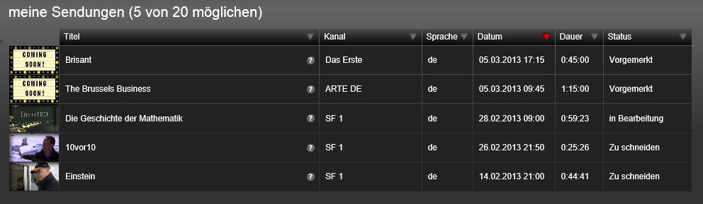 - Online Videorecorder für TV-Sendungen der in der Schweiz empfangbaren Fernsehstationen